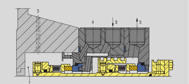 Hesi-fluidoa prozesuko medioan sartzen da barruko zigiluaren aurpegitik.